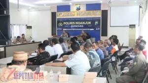 Seputarkita,Nganjuk – Polres Nganjuk menggelar Rapat Koordinasi (Rakor) Lintas Sektoral Operasi Lilin Semeru 2025 dalam rangka mewujudkan situasi kamtibmas dan kamseltibcarlantas yang kondusif pada perayaan Natal 2025 dan Tahun Baru 2026 di wilayah Kabupaten Nganjuk. Kegiatan berlangsung di Rupatama Polres Nganjuk dan dipimpin langsung Kapolres Nganjuk AKBP Henri Noveri Santoso, S.H., S.I.K., M.M., Kamis (18/12/2025).