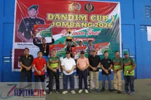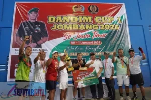 Seputarkita,Jombang – Kodim 0814/Jombang resmi menutup Turnamen Tenis Lapangan Piala Dandim Cup I Tahun 2026 dalam upacara penutupan yang digelar di Lapangan Tenis Indoor Jalan Kusuma Bangsa, Desa Sengon, Kecamatan Jombang, Kabupaten Jombang, Minggu (11/01/2026).